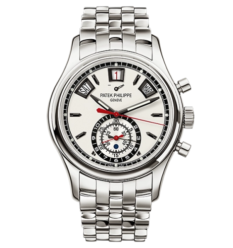 Patek Philippe 5960/1A-001, 40.5mm stainless steel case with silver dial and sapphire crystal. Automatic Caliber CH 28-520 IRM QA 24H featuring annual calendar, flyback chronograph, day/night display, and power reserve indicator.