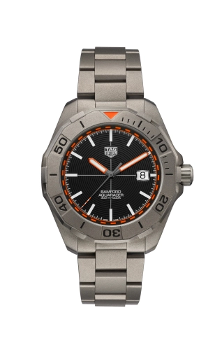 TAG Heuer Aquaracer x Bamford limited edition men?s watch featuring a black dial, Calibre 5 automatic movement, and lightweight titanium case. With only 1500 pieces produced and 300m water resistance, it?s a rare and sporty luxury timepiece.
