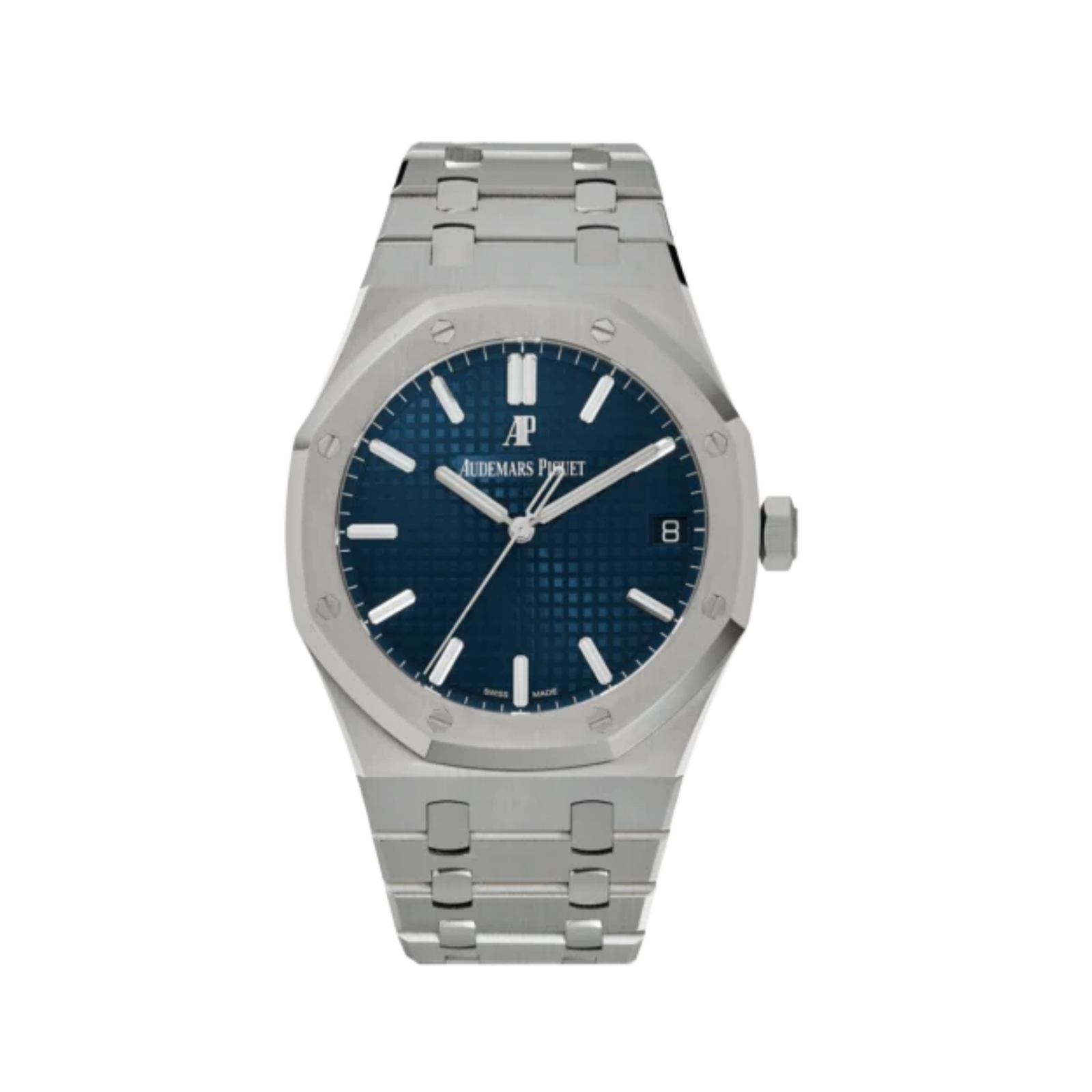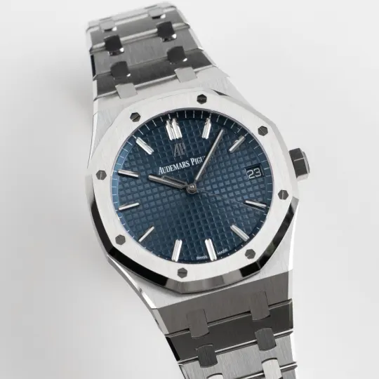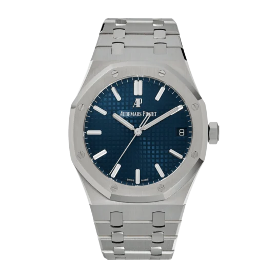 The Audemars Piguet Royal Oak Selfwinding 41mm (Ref. 15500ST) is a true icon of luxury watchmaking, featuring a stainless steel case, signature octagonal bezel, and the renowned blue ?Grande Tapisserie? dial. Powered by an in-house automatic movement with approximately 70-hour power reserve, this timepiece offers precision, durability, and timeless design. With its integrated bracelet, sapphire caseback, and refined sporty aesthetic, it delivers exceptional comfort and versatility?making it ideal for both everyday wear and high-end collections.