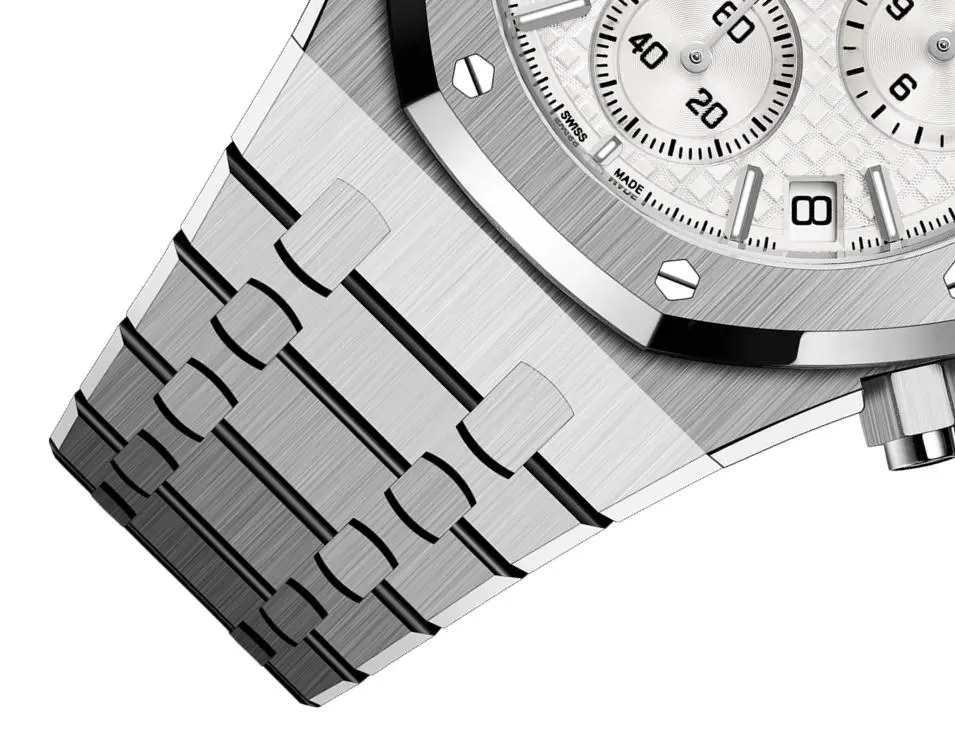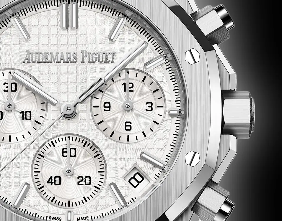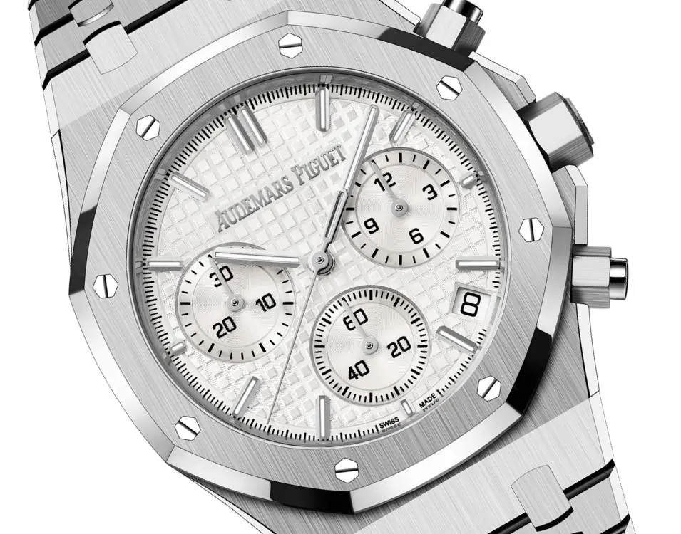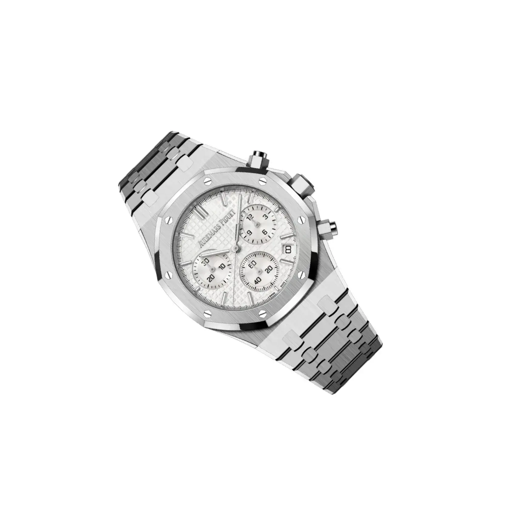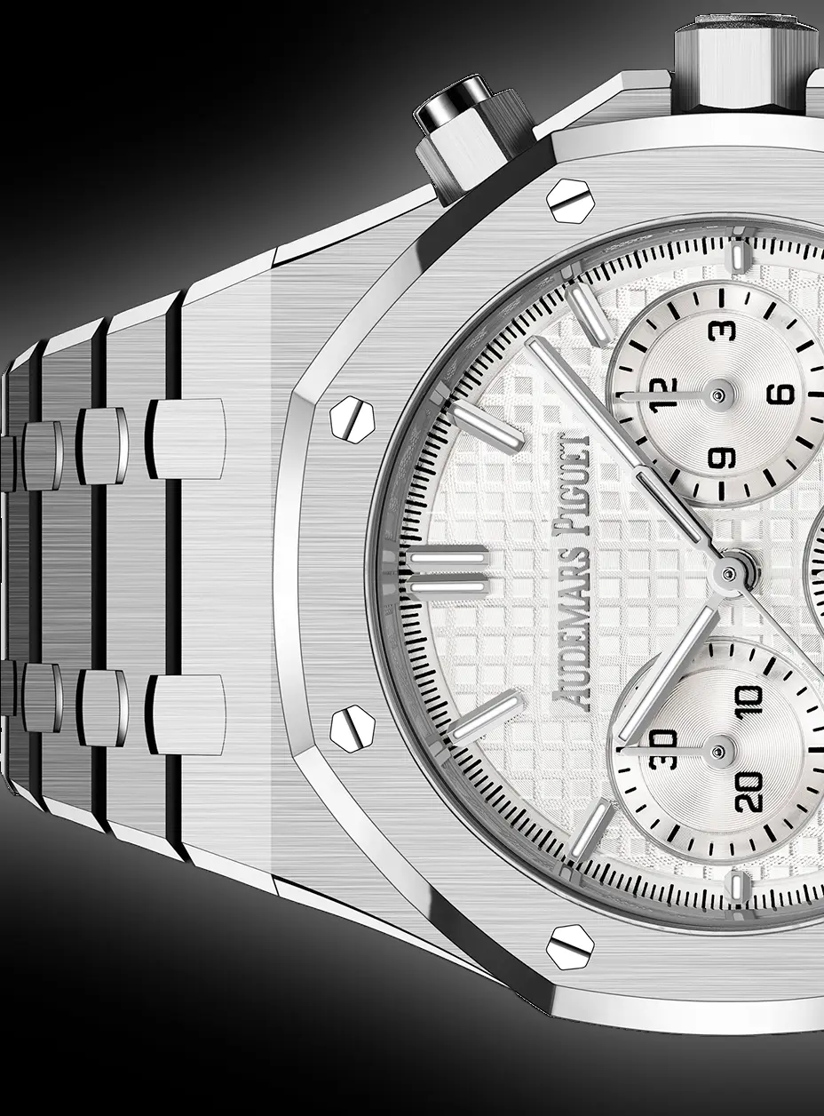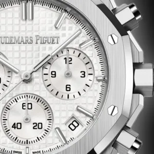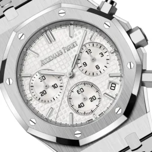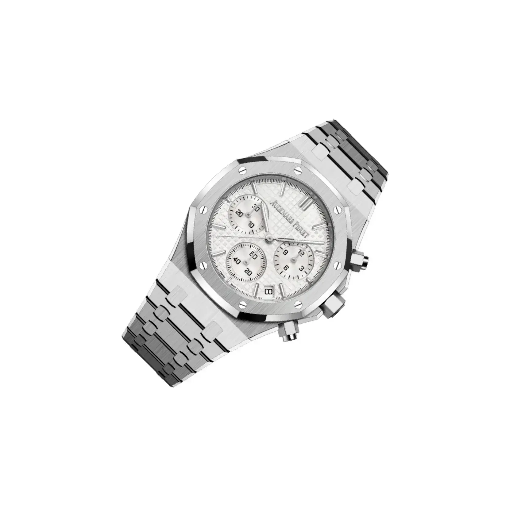 The Audemars Piguet Royal Oak Chronograph 41mm (Ref. 26240ST.OO.1320ST) is a true icon of luxury watchmaking, crafted in premium stainless steel with the signature octagonal bezel and ?Grande Tapisserie? dial. Powered by an advanced automatic chronograph movement with flyback function and approximately 70-hour power reserve, this timepiece offers precision, durability, and performance. Its integrated bracelet, sapphire crystal, and refined sporty design ensure both comfort and versatility. Perfect for collectors and everyday wear, this watch delivers timeless style, reliability, and the unmistakable craftsmanship of Audemars Piguet.