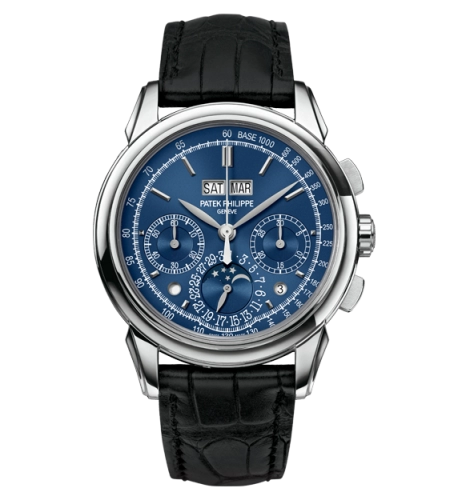 A sophisticated chronograph-style watch featuring a blue dial and elegant white metal finish, designed for modern luxury appeal.