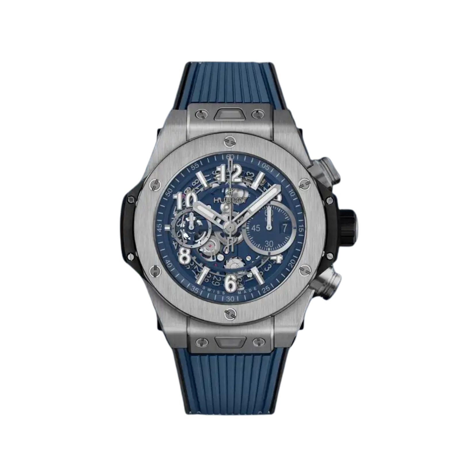 Designed with a transparent blue inspired dial, this premium chronograph-style watch delivers a distinctive look with refined detailing and a comfortable luxury fit.