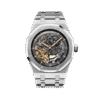 A refined stainless steel wristwatch featuring a clean white dial with intricate detailing. Designed with a premium automatic movement and a polished metal bracelet, this timepiece blends elegance with everyday durability. Ideal for formal wear and daily use, offering a sophisticated and modern wrist presence.