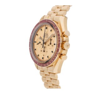 Watch Specifications: Brand: Omega Series: Speedmaster Anniversary Series Model Number: 310.60.42.50.99.001 Material: Moonshine Gold Case Size: 42 mm Case Shape: Round Case Back: Transparent Bezel: Ceramic Movement: Manual-Wind Dial Color: Yellow Dial Type: Analog Dial… Available – your luxury watch destination.