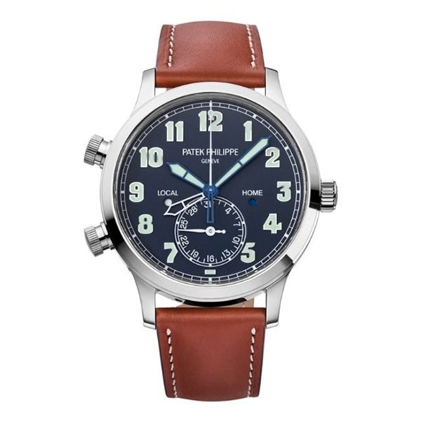 Two Time Zones in One Timepiece Patek Philippe Complications Calatrava 5524G-001 watch has a special feature. It shows the time for two places – your home and where you are now. So, you’ll always know… Available – your luxury watch destination.