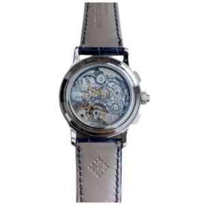 Patek Philippe presents the elegant and timeless Grand Complications 5370P-011 wristwatch. Its new blue dial invigorates the well-known Patek Philippe tradition of using grand feu enamel dials, providing a modern and attractive look. This watch… Available – your luxury watch destination.