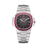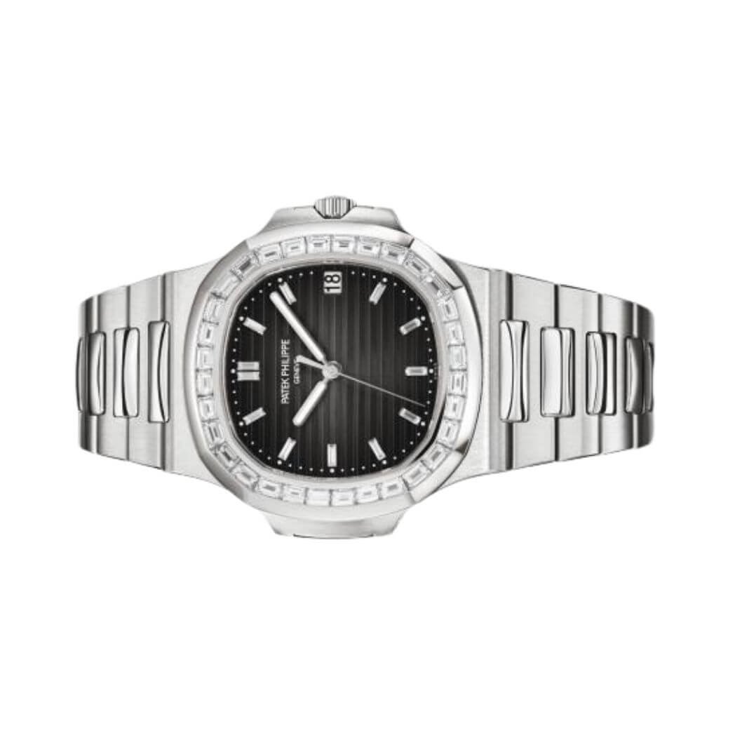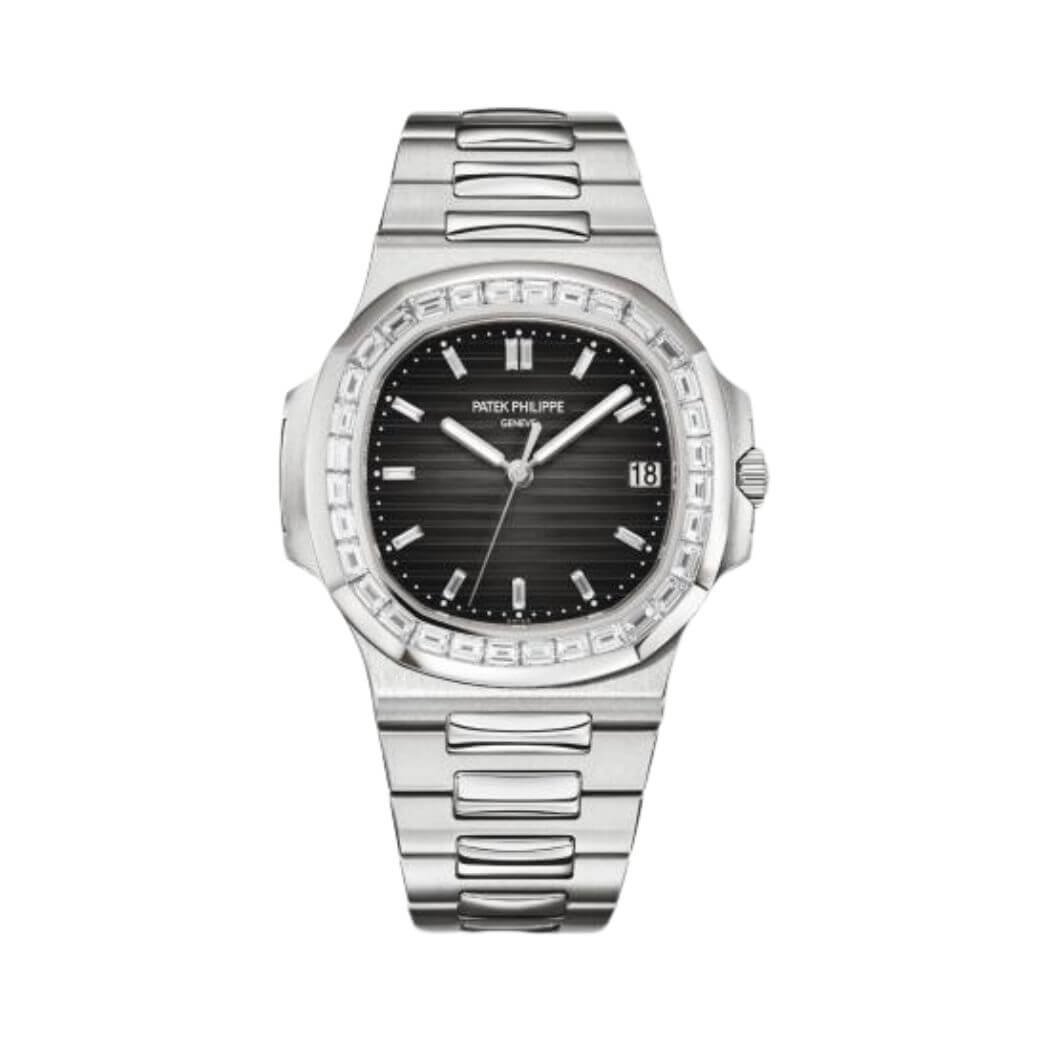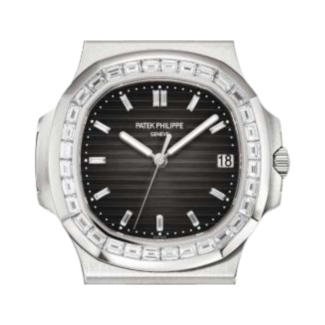 Patek Philippe Nautilus 5711/110P-001 Diamond Bezel 44.05mm Platinum Limited Edition This beauty has a 40mm Nautilus Diamond Bezel case in Platinum with a bezel set with 32 baguettes diamonds. This reveals a sobre black dial… Available – your luxury watch destination.