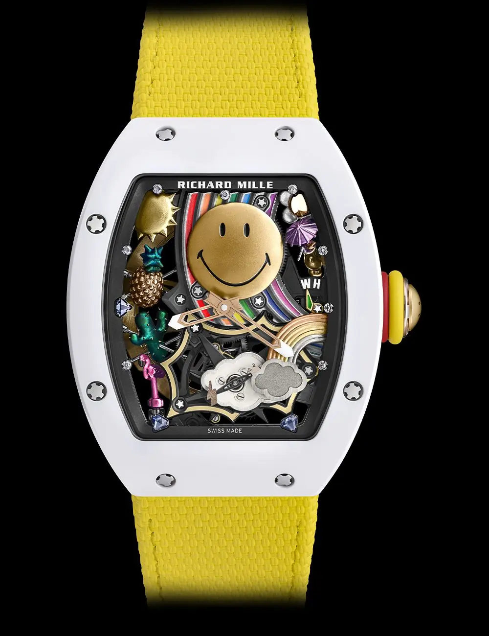The Richard Mille RM 88 Automatic Winding Tourbillon Smiley is a high-end luxury watch that combines cutting-edge technology, unique design, and precision craftsmanship. Featuring an automatic winding tourbillon movement, a playful ?Smiley? motif, and a lightweight yet durable case, this timepiece delivers exceptional performance, comfort, and style. Perfect for collectors and watch enthusiasts, it answers all questions about reliability, design, functionality, and exclusivity in one iconic watch.