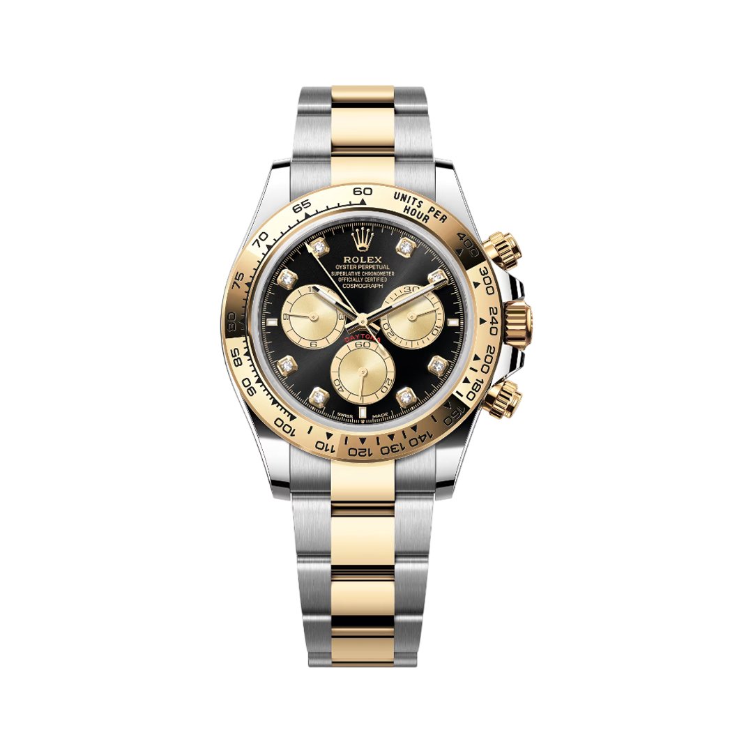 WATCH SPECIFICATIONS: Brand: Rolex Model: Cosmograph Daytona Reference Number: 126503-0002 Case Material: Oystersteel & Yellow Gold Case Diameter: 40 mm Case Shape: Round Dial Color: Black Dial Numerals: Diamonds Bezel Color: Gold Bezel Type: Smooth… Available – your luxury watch destination.