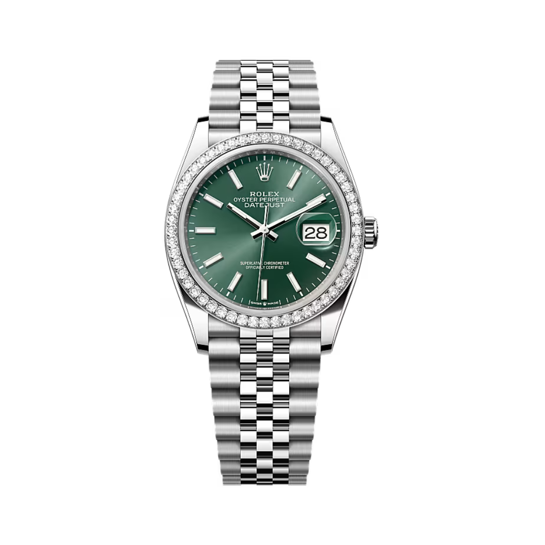 WATCH SPECIFICATIONS Brand: Rolex Model: Datejust Reference Number: 126284RBR-0043 Movement: Automatic Power Reserve: 70 hours Case Material: White Gold Bracelet Material: Oystersteel Crystal: Sapphire Dial Color: Mint Green Clasp: Folding Oysterclasp (Oystersteel) Water Resistance: 10… Available – your luxury watch destination.