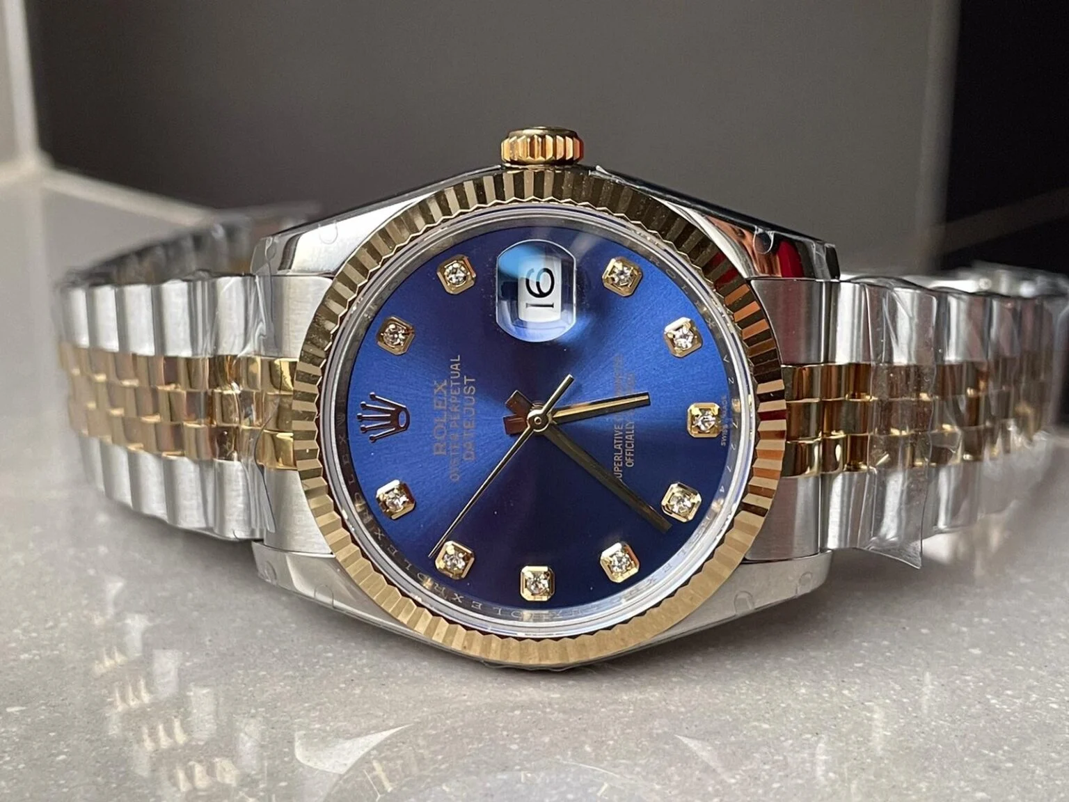 The Rolex DateJust 31mm 278289 BPF Super Clone for ladies features a stunning blue and gold dial, fluted gold bezel, and durable 316L stainless steel case. Powered by the reliable A2836 automatic movement, this elegant timepiece blends luxury styling with everyday wearability.