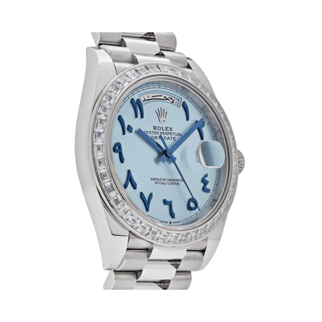 The Rolex Day Date 22839TBR Automatic is a rare and high-end wristwatch crafted from platinum. It features a 40mm case that exudes elegance and durability. The platinum bezel is set with diamonds, adding a touch… Available – your luxury watch destination.