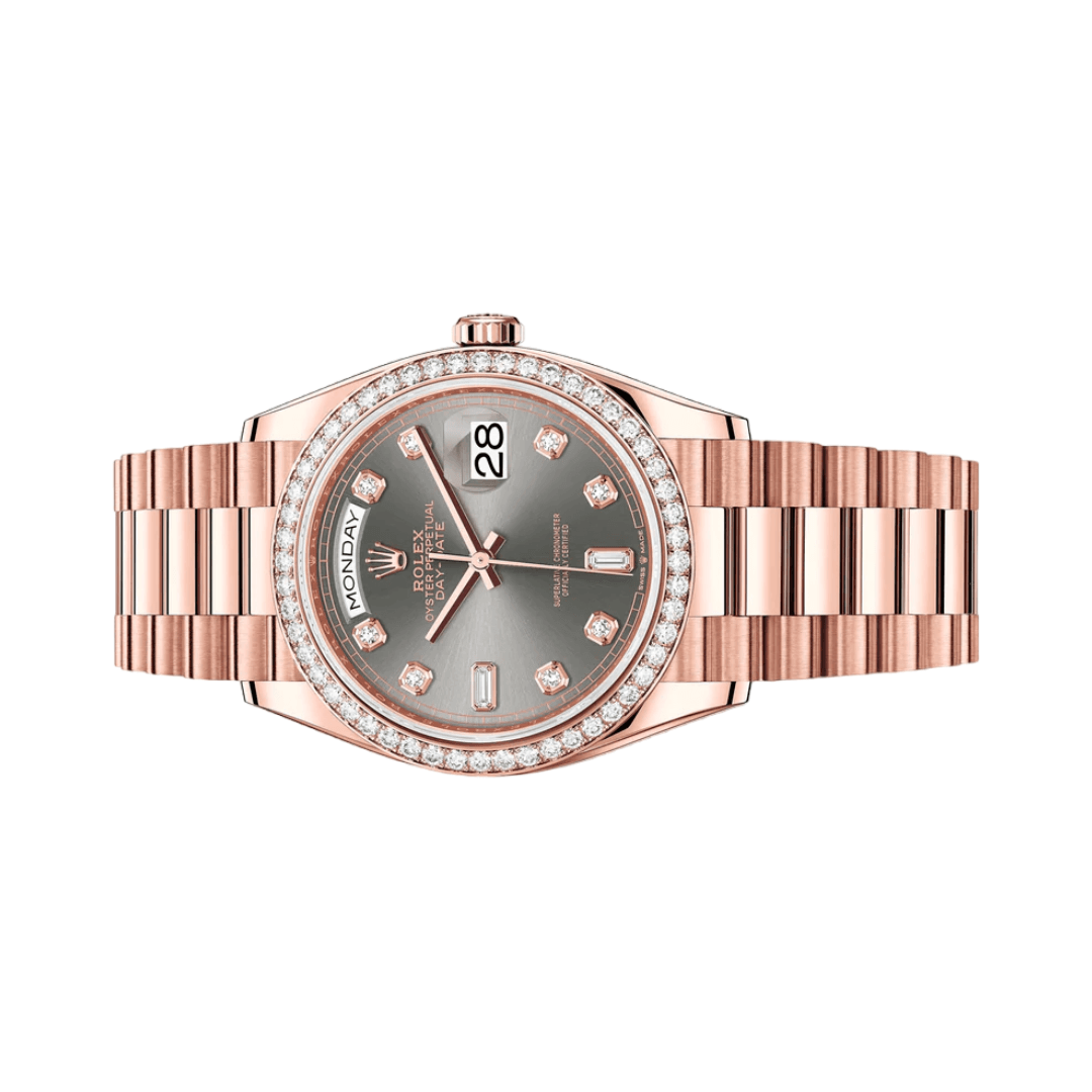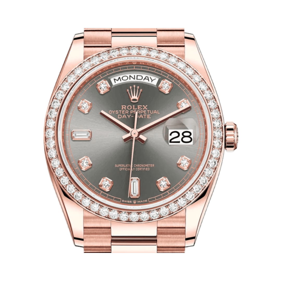 The Rolex Day-Date 36 President 128345RBR combines timeless elegance with Rolex’s signature craftsmanship. Known for its exclusive design, this timepiece boasts a 36mm case crafted in 18 ct Everose gold, a unique alloy developed by… Available – your luxury watch destination.