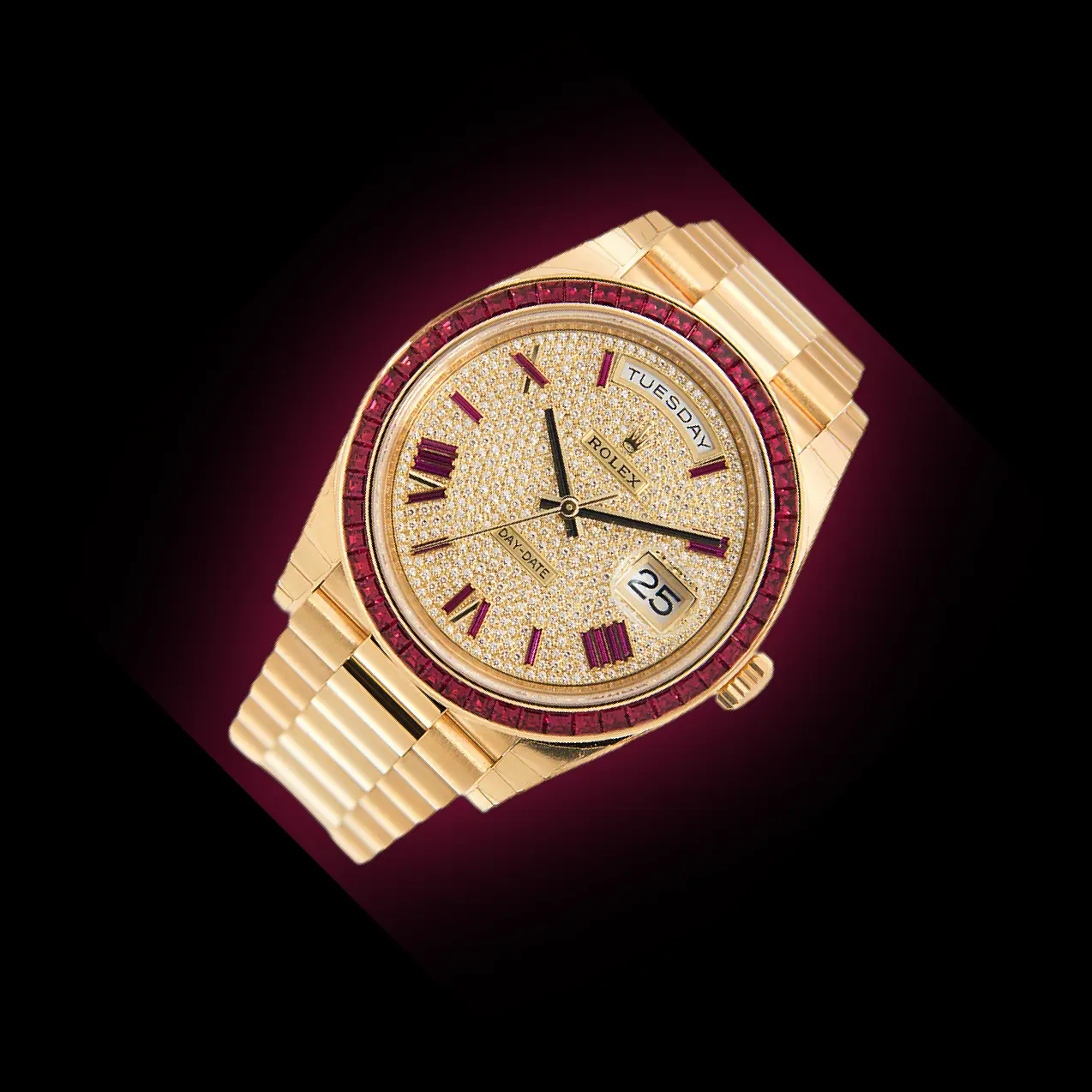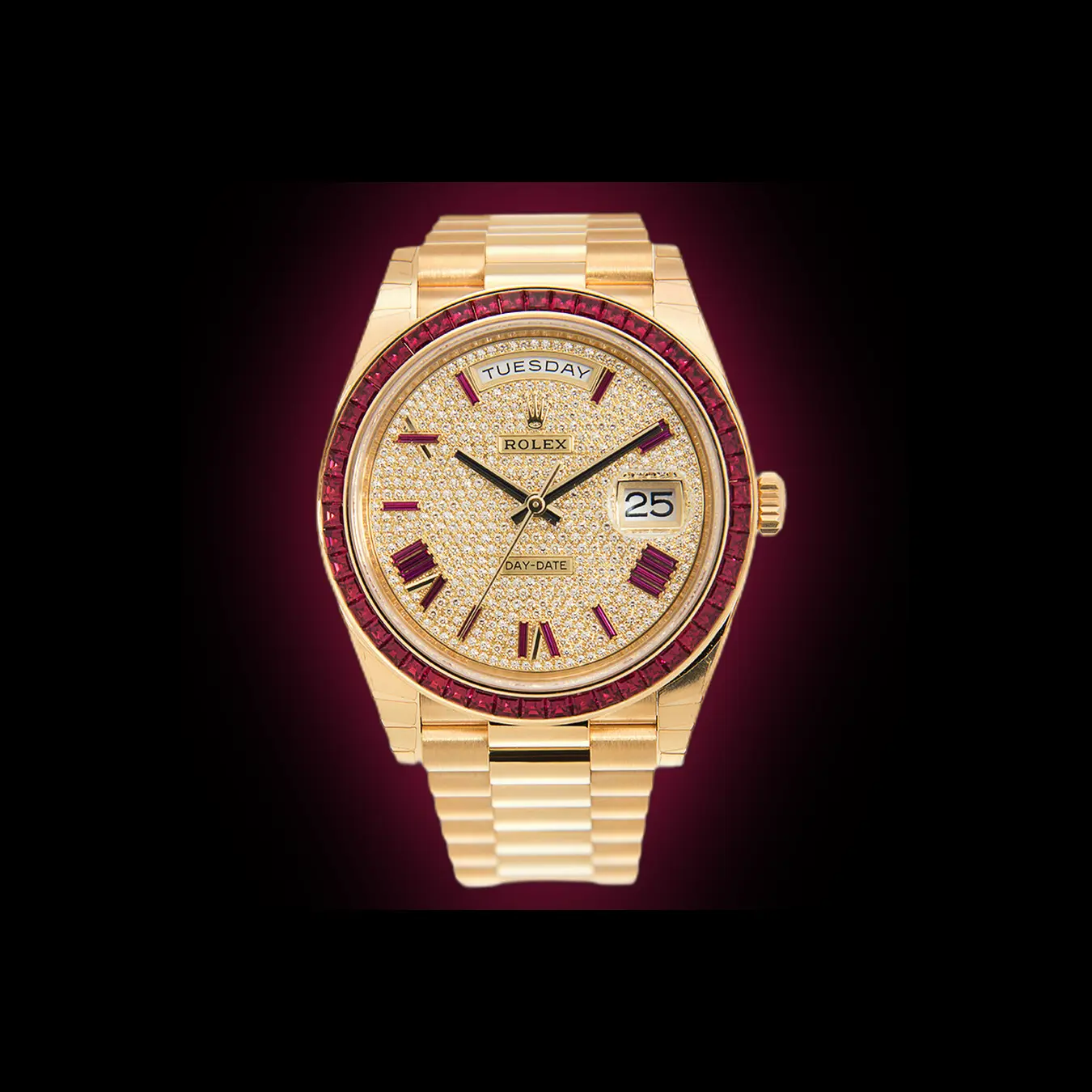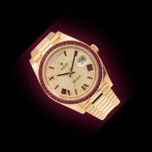 Discover the Rolex Day-Date 40 with reference 228398TRU, an exquisite luxury watch crafted in 18K yellow gold. This opulent timepiece features a diamond-paved dial, a bezel adorned with baguette-cut rubies, and the iconic President bracelet, blending sophistication with timeless Rolex craftsmanship. Explore detailed specifications, design highlights, versatility for daily wear, and insights into replica options. This complete guide provides everything enthusiasts and collectors need to know about this prestigious Day-Date 40 model.