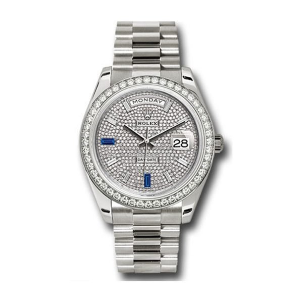 Horological masterpiece SPECIFICATIONS Brand: Rolex Ref. 228349RBR Collection: Oyster Perpetual Case Material: 18K White Gold Movement: Automatic Case shape: Round Bracelet: 18K White Gold bracelet strap Crystal: Scratch resistant sapphire Bezel: Diamonds Dial: Diamonds Diameter: 40mm… Available – your luxury watch destination.