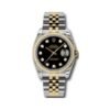 36mm 18K white gold case, case lugs set with 32 diamonds, bezel set with 52 diamonds, mother of pearl dial, diamond hour markers, and President bracelet.