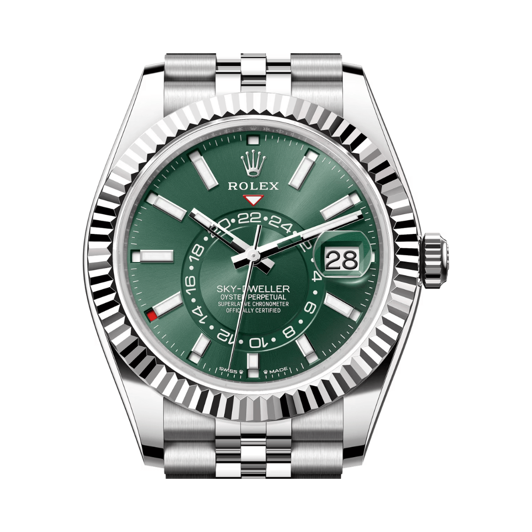 Rolex Sky Dweller 336934-0002 SPECIFICATIONS Brand: Rolex Model: Sky-Dweller Reference Number: 336934-0002 Movement: Automatic Power Reserve: 72 hours Case Material: Oystersteel And White Gold Bracelet Material: Oystersteel Crystal: Sapphire Dial Color: Mint Green Clasp: Folding… Available – your luxury watch destination.