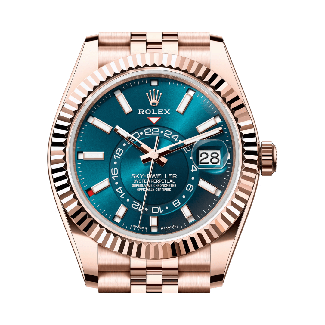 Rolex Sky Dweller 336935-0005 SPECIFICATIONS Brand: Rolex Model: Sky-Dweller Reference Number: 336935-0005 Movement: Automatic Power Reserve: 72 hours Case Material: 18ct Everose Gold Bracelet Material: 18ct Everose Gold Crystal: Sapphire Dial Color: Blue-Green Clasp: Folding… Available – your luxury watch destination.