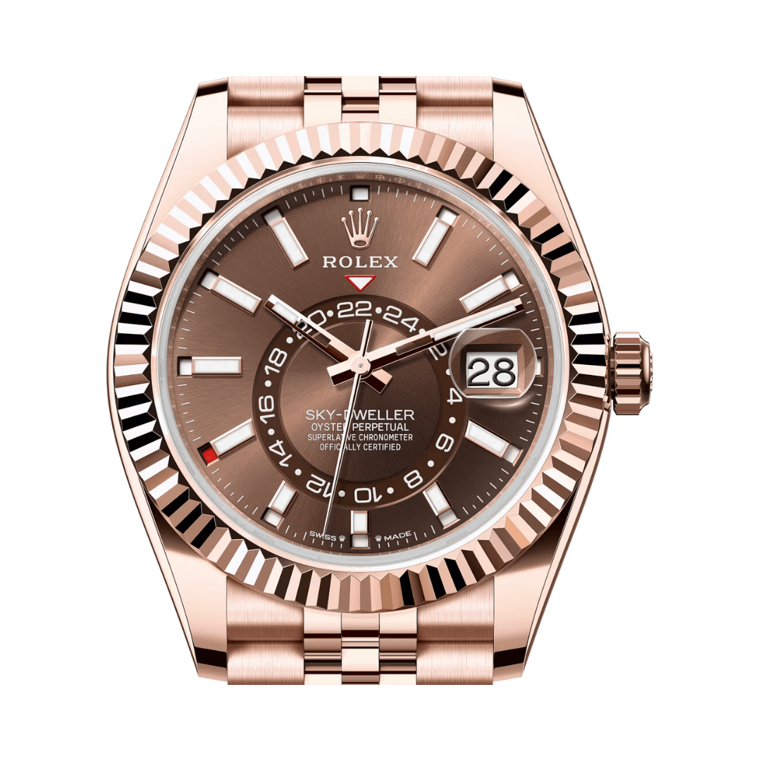 Rolex Sky Dweller 336935-0006 SPECIFICATIONS Brand: Rolex Model: Sky-Dweller Reference Number: 336935-0006 Movement: Automatic Power Reserve: 72 hours Case Material: 18ct Everose Gold Bracelet Material: 18ct Everose Gold Crystal: Sapphire Dial Color: Chocolate Clasp: Folding… Available – your luxury watch destination.