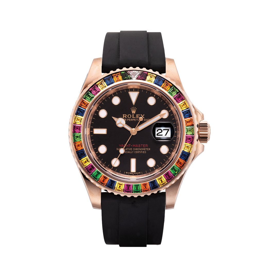 The Rolex Yacht Master Tutti Frutti 116695SATS is a stunning example of luxury, workmanship, and daring design. Crafted in 18k rose gold, this 40mm men’s watch displays Rolex’s ability to combine beauty and personality. The… Available – your luxury watch destination.